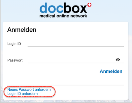 Klicken Sie auf „Login ID anfordern„. Durch Angabe Ihres Nachnamens und der auf docbox hinterlegten Email-Adresse können Sie sich Ihre Login-ID per Email zusenden lassen.